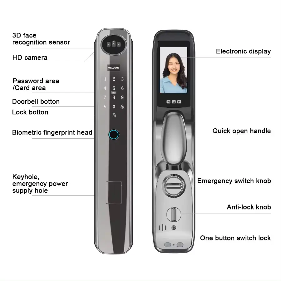 High End Active Monitoring Active Video Intercom Talking Zinc Alloy WiFi Tuya Smart Door Lock with 300W HD Camera and Monitor