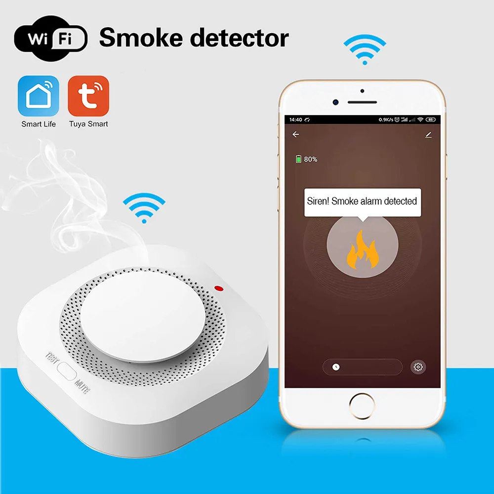 Safe Security Fire Alarm Smoke Detector Sensor Standalone WIFI Mobile Phone App Control Home Sound Battery Powered.